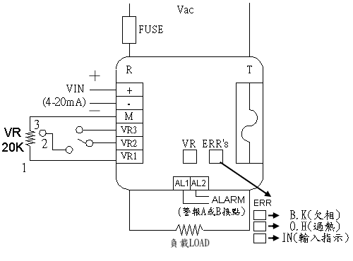 H.B/SCR:藍燈表示斷線,黃燈表示SCR故障,紅燈表示過流